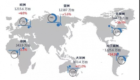 亚洲市场,2021冷年包含中国在内的总体销售规模是1.23亿台,同比增长5.6%。占全球接近74%的份额。除中国庞大的体量外,其消费国主要集中在日本、印度、韩国、泰国等地。其中日本国内规模约为861万台,除了本国当地的生产基地外,大部分也是在中国生产后返销回日本;印度市场规模为684万台,近几年,印度进出口政策不断调整,贸易保护加强,基本都是本国自产自销;韩国主要是从中国进口,2021冷年规模为297万台;泰国销量为257万台,泰国当地有生产基地,除满足自身市场需求外,还有部分用于出口。